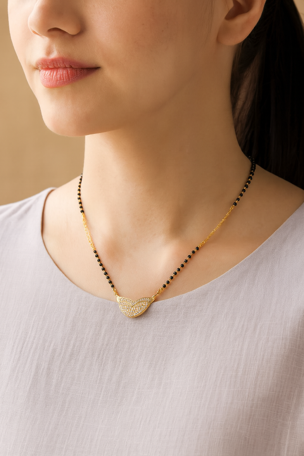 Elegant Floral CZ Gold-Plated Mangalsutra – Modern Daily Wear Design