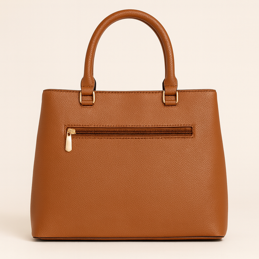ZUBY Women's Quilted Tan Faux Leather Handbag with Dual Handles & Gold Accent