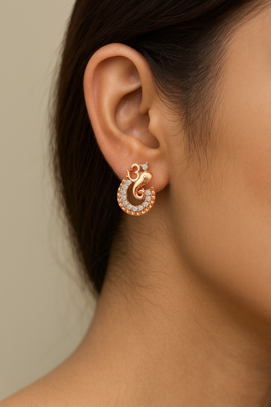Red Trees Ganesh Design Rose Gold Stud Earrings | 18KT & White Gold Plated