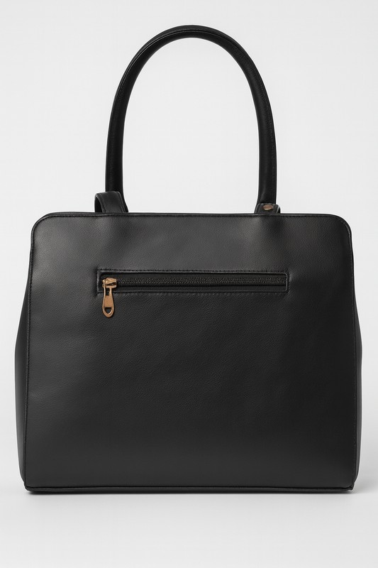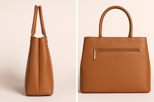 Kate Tan Faux Leather Structured Handbag – Elegant Daily Office Tote with Rear Zip Pocket