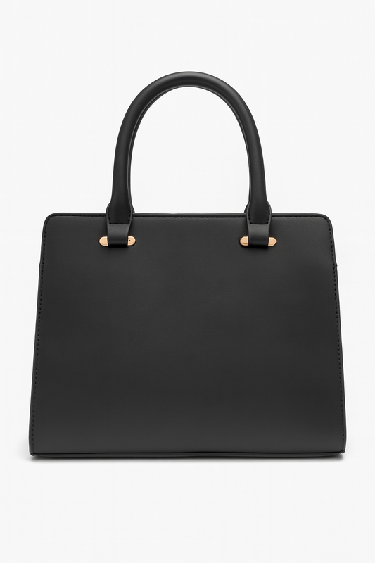UNIQFEEL Elegant Black Structured Handbag with Front Flap Pocket & Gold Accents
