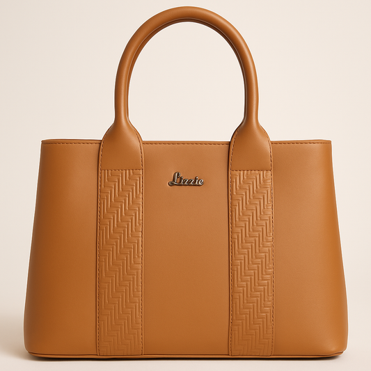 LIZZIE Tan Textured Panel Faux Leather Handbag – With Detachable Sling Strap