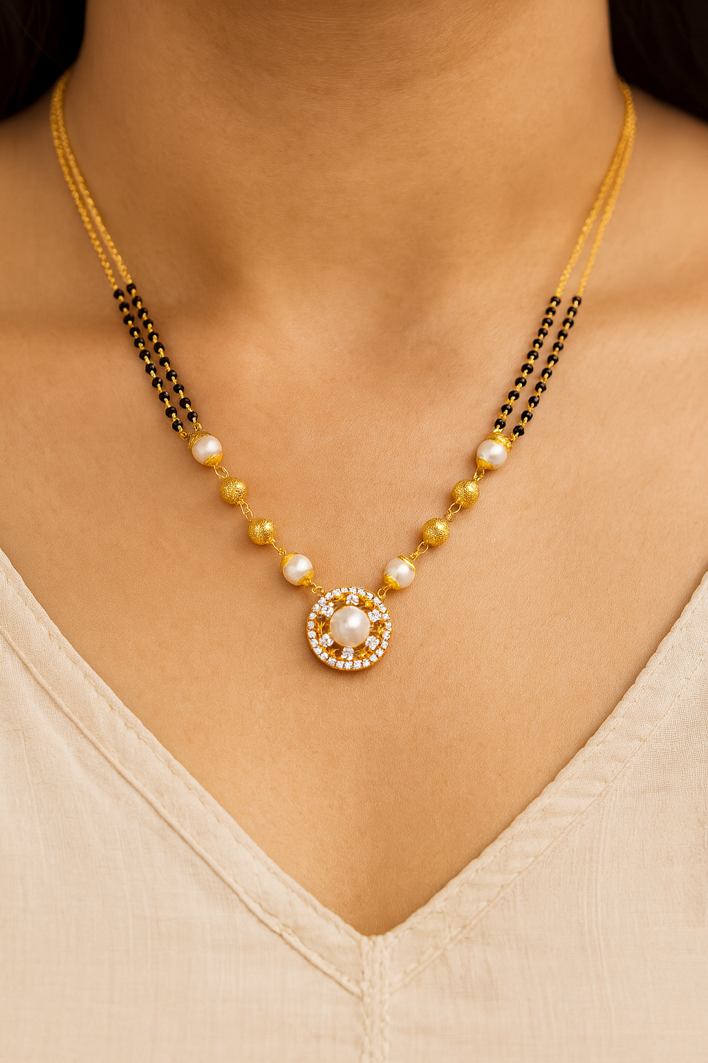 Elegant Pearl & CZ Daily Wear Mangalsutra – Gold Plated Double Chain Design