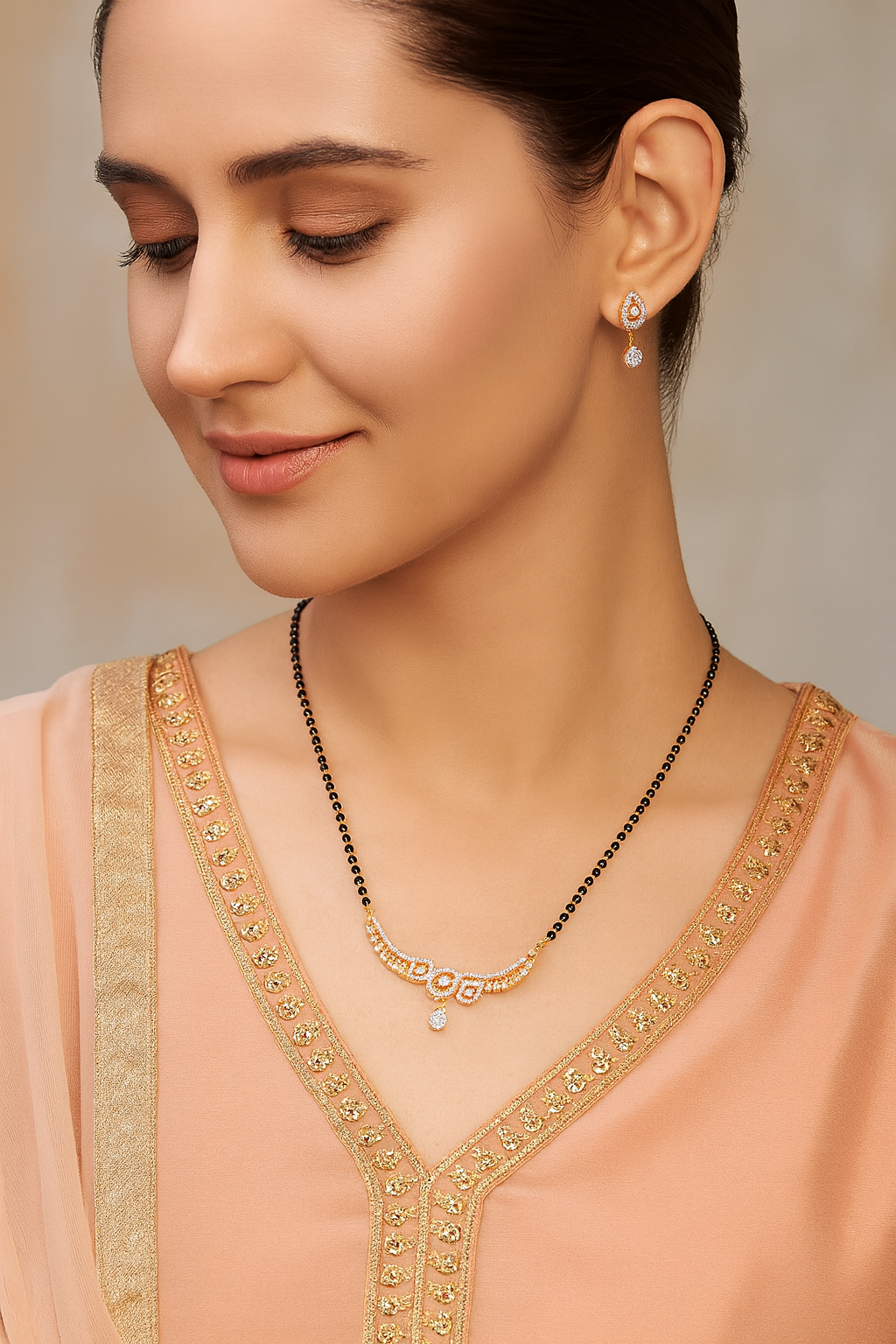 Includes: 1 Mangalsutra Necklace + 1 Pair of Earrings