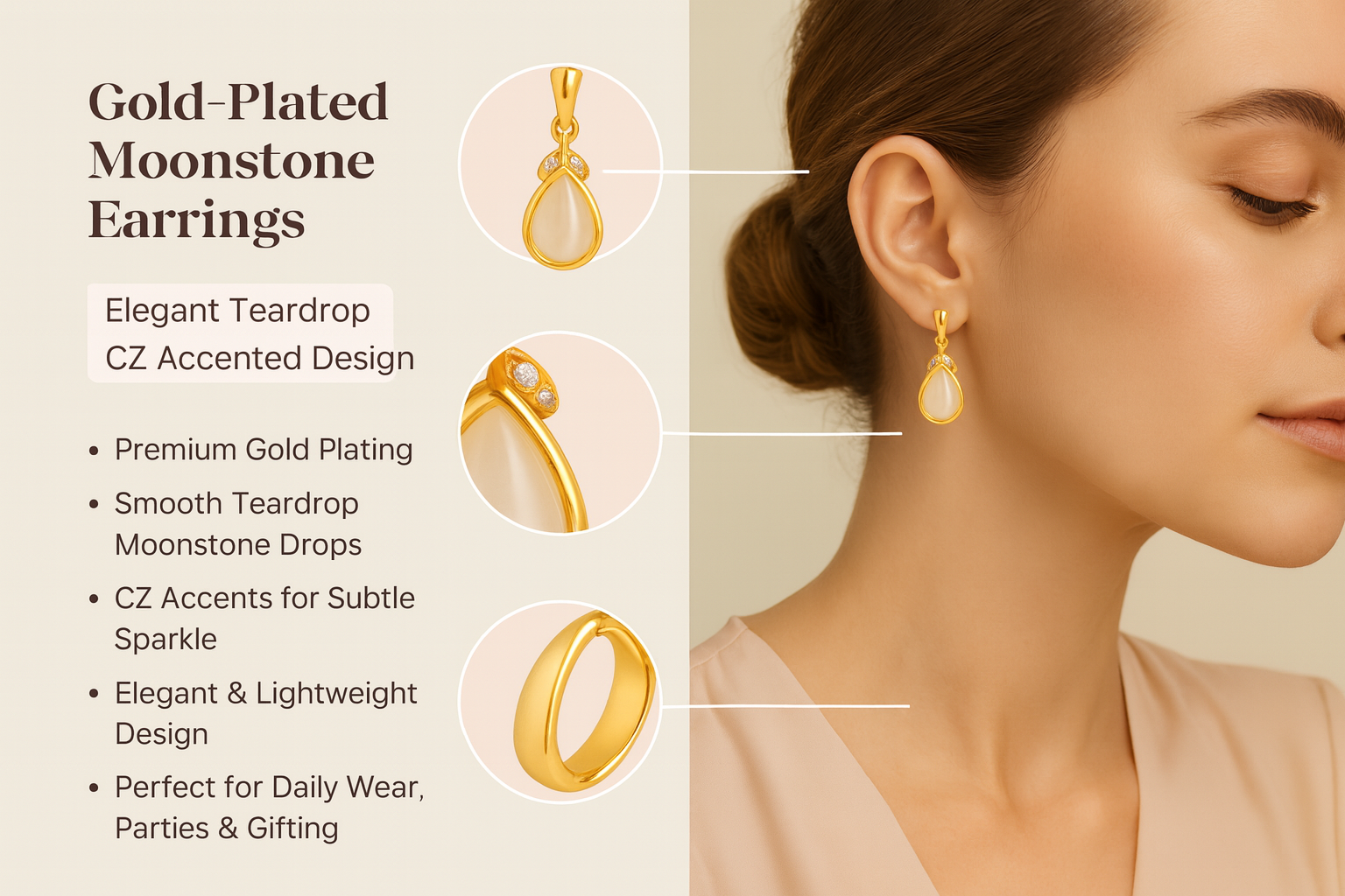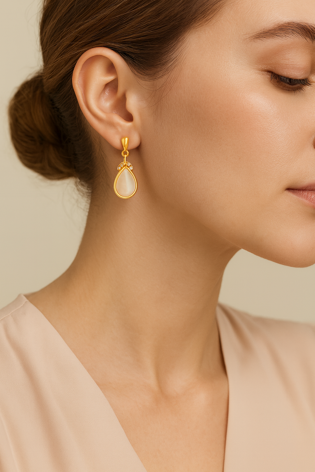 Gold-Plated Teardrop Pearl Earrings with CZ Accents – Everyday Elegance