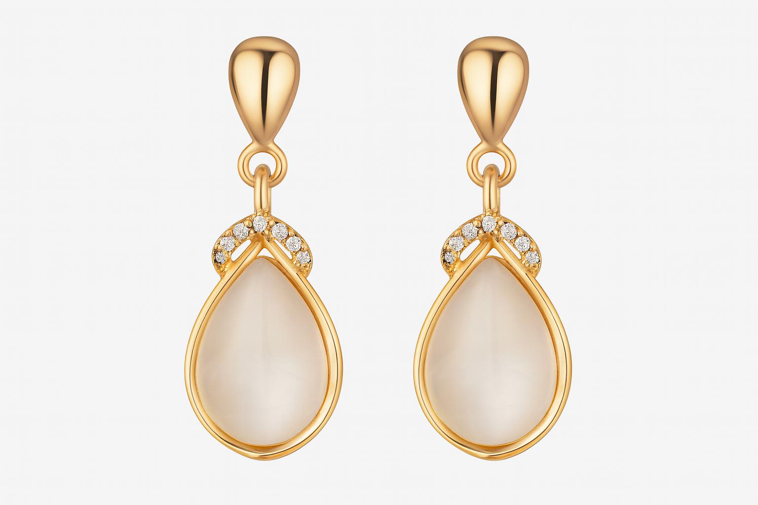 Simple yet sophisticated, these gold-plated teardrop earrings exude quiet luxury. Featuring a smooth, pearl-like teardrop centerpiece cradled in a soft gold frame, the design is further enhanced with a subtle arc of sparkling CZ accents for just the right amount of shimmer.