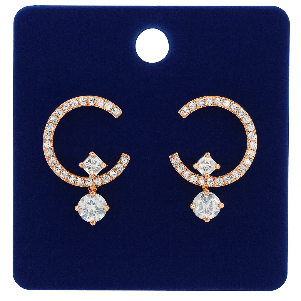 Rose Gold-Plated Crescent CZ Earrings with Geometric Drop Detailing