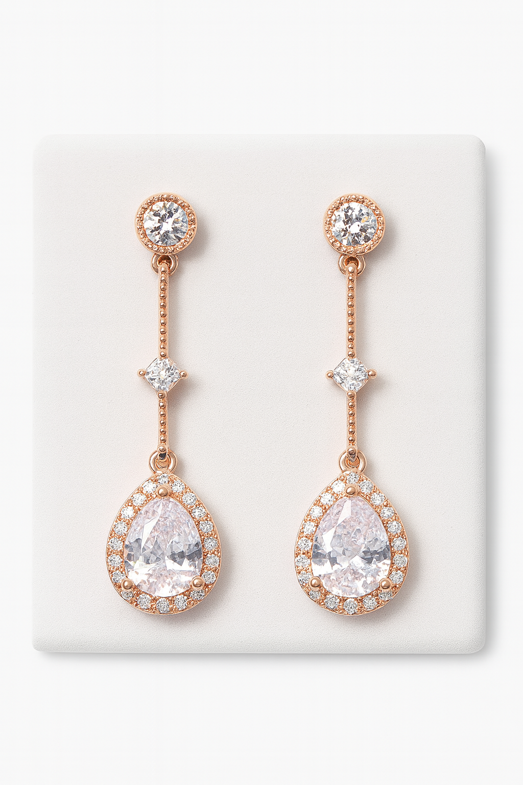 Rose Gold-Plated Linear Drop Earrings with Teardrop CZ Halo